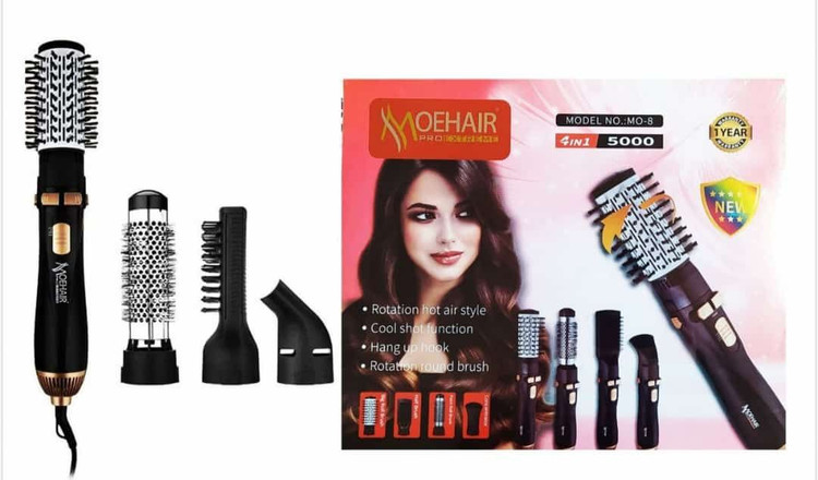 کارایی:برس حرارتی برای لخت کردن مو ،برس چرخشی به دو طرف برای نیم فر و لخت کردن ،برس سیمی ثابت برای موهای پرپشت ،کله سشواری برای خشک کردن موهای خیس