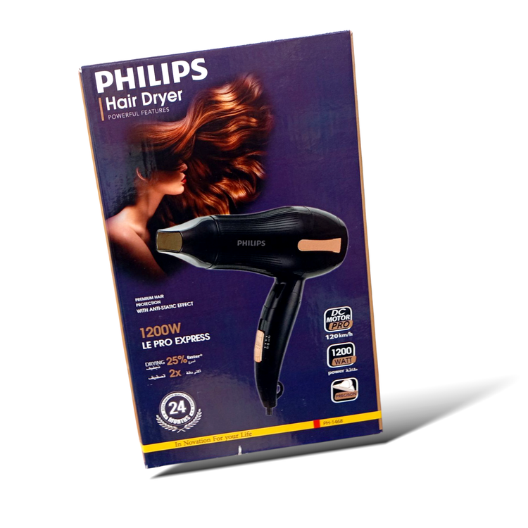 سشوار مسافرتی فیلیپس ph1468یکی از بهترین دستگاههای موجود در بازار است که با توان 1200 وات با قدرت و سرعت حداکثری موها را خشک میکند. این وسیله 3 حالت مختلف تنظیم دما و سرعت دارد که به کاربران این امکان را میدهد با توجه به نیازشان از هر درجه استفاده کنند. همچنین قابلیت باد سرد این سشوار کمک میکند تا آسیب کمتری به بافت اصلی مو وارد شود. یکی از مشخصات بارز این دستگاه دسته تاشو آن است که حمل آن را برای کاربران آسانتر کرده است. این دستگاه باکیفیت و ایمن سیمی با طول 8/1 سانتیمتر دارد.
