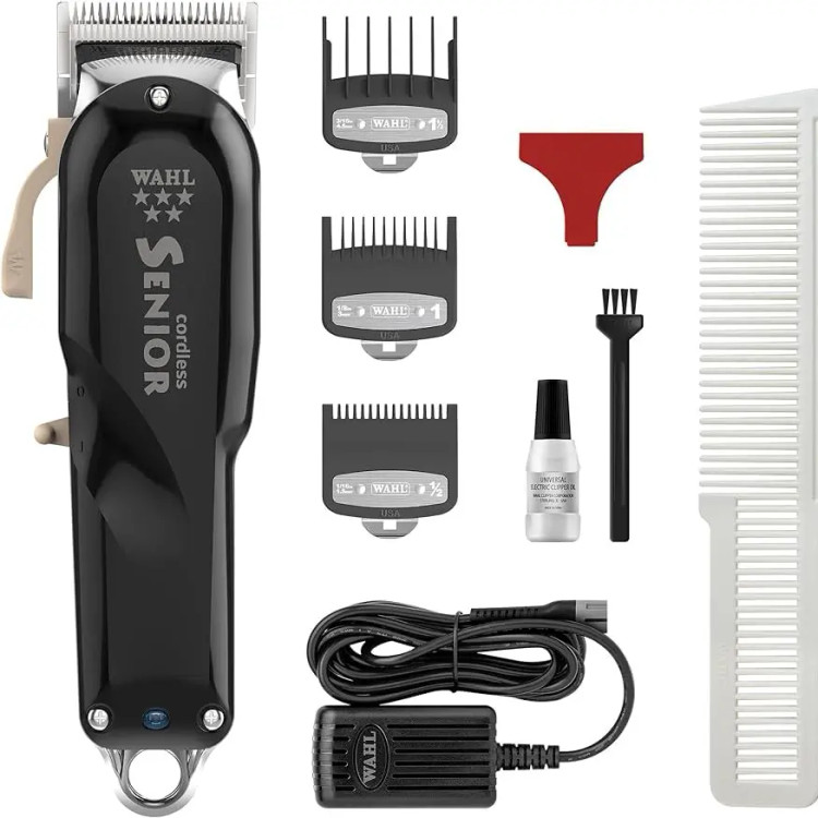ماشین وال سنیور اصلی و اورجینال WAHL Cordless senior مونتاژ و ساخت u s a،تیغ استیل تیتانیومی،باتری لیتیم شارژی و مستقیم برق،دور موتور 6500
